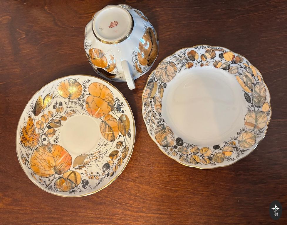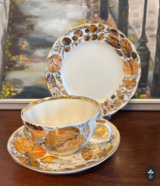 Väga ilus õhukese seinaga teeninduskomplekt Diana kullaga. Täielik komplekt. On 2 kaant, lisaks saab osta 3 trio+ 30€.
