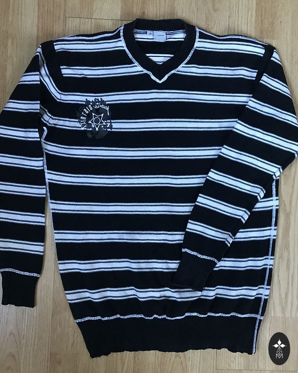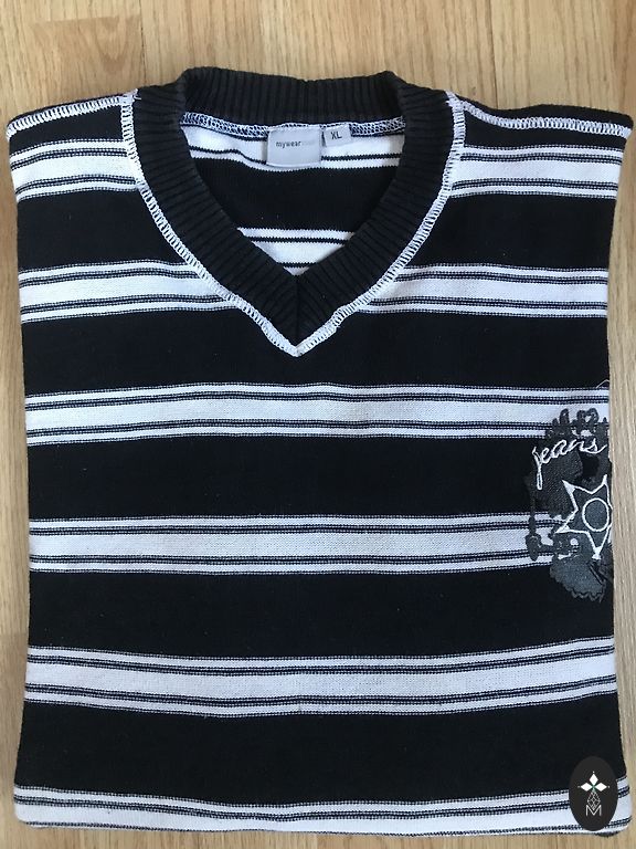 Size XL, clean, no stains. Slight wear on the letters at the front - see picture. Inside is lined with soft material. The image on the back is of good quality.