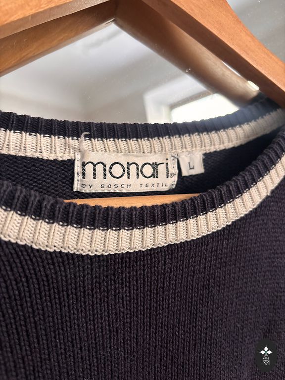 Ļoti maigs tonis. Kā jau lentīšu dzija, pabiezs. Bet ne ziemai. Dzijas sastāvs 65% kokvilna, 35% akrils. Sānos eleganti šķēlumi. Garums 70 cm. Krūtis (nestiepjot) 126 cm un vairāk. Rokas garums 45 cm. Ļoti elastīgs.