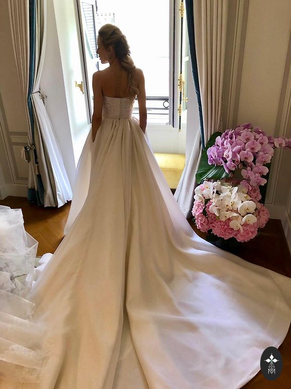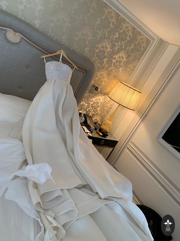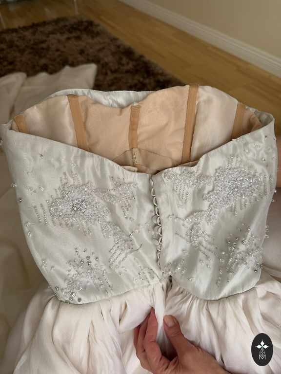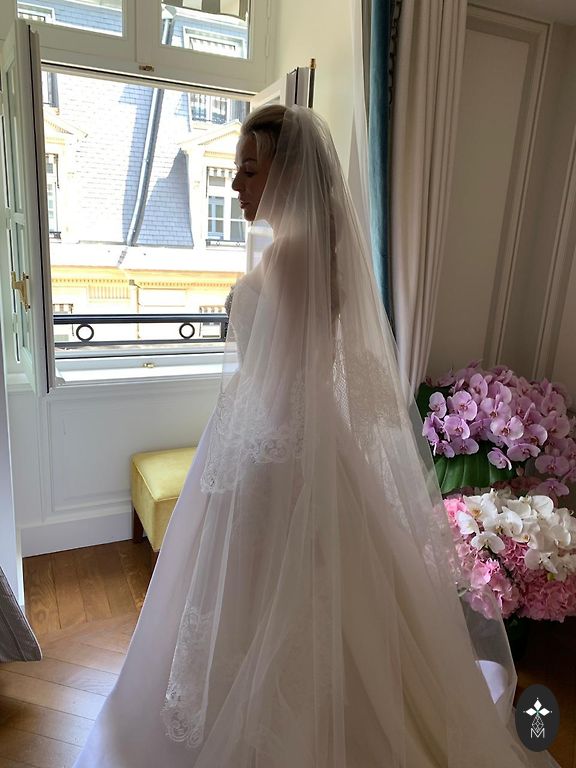 The dress will fit up to a height of 1.85 m, and it also has a corset, so you can try it on for a small size. Worn once, bought in a store. The dress has been dry cleaned.