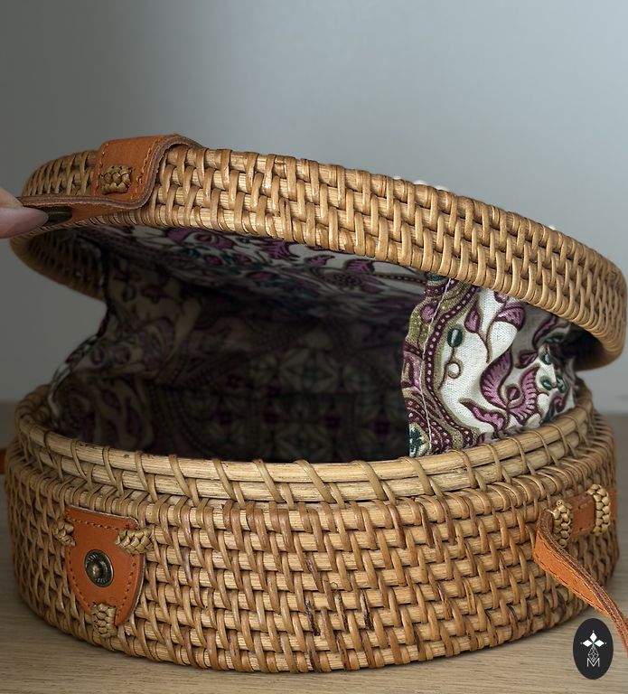 Baliešu stila soma, aiztaisāms ar pogu.