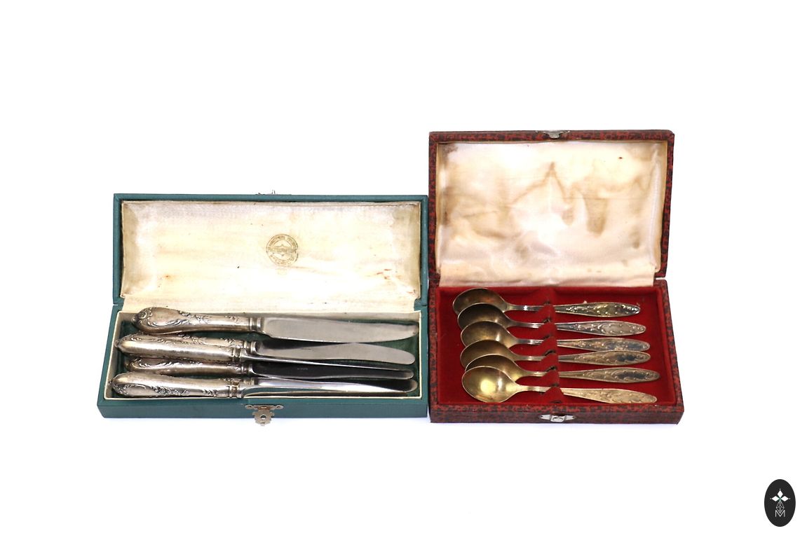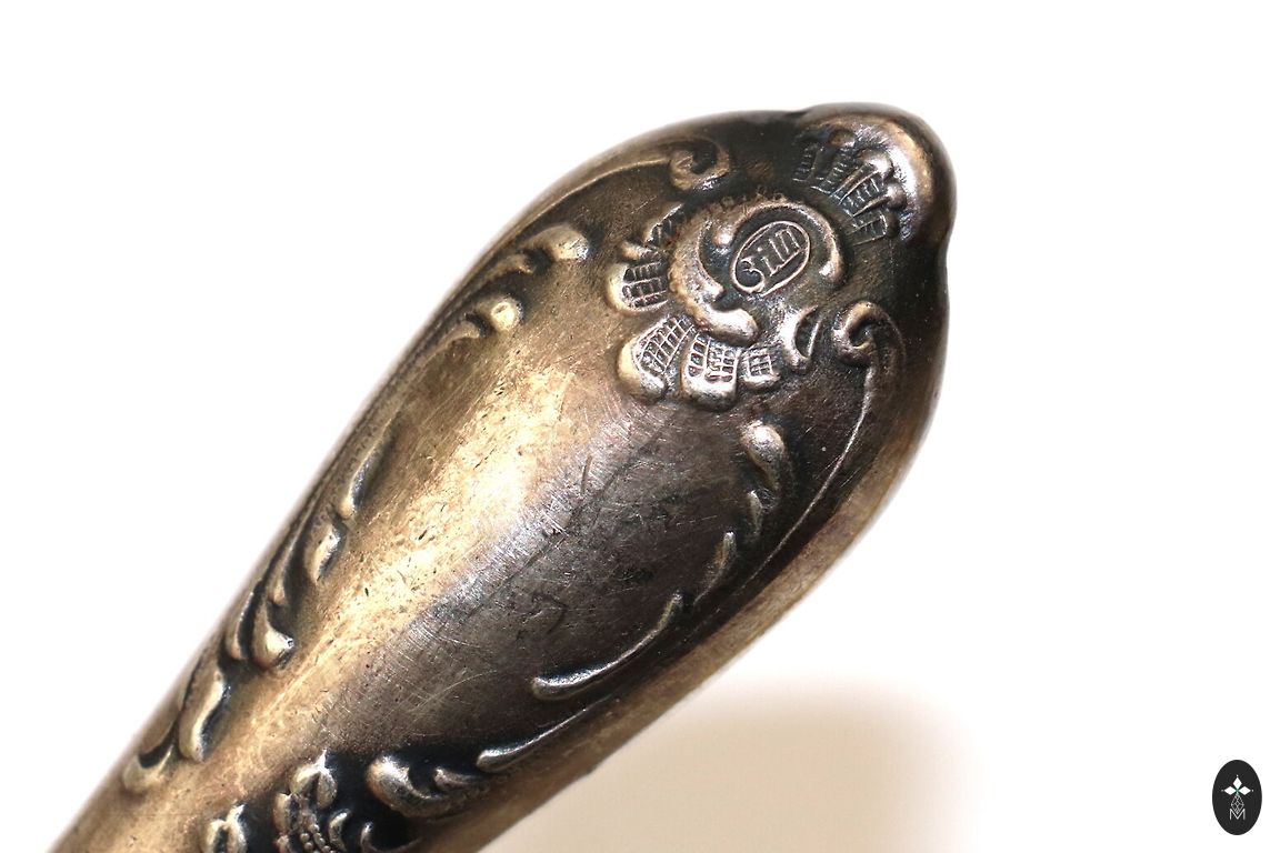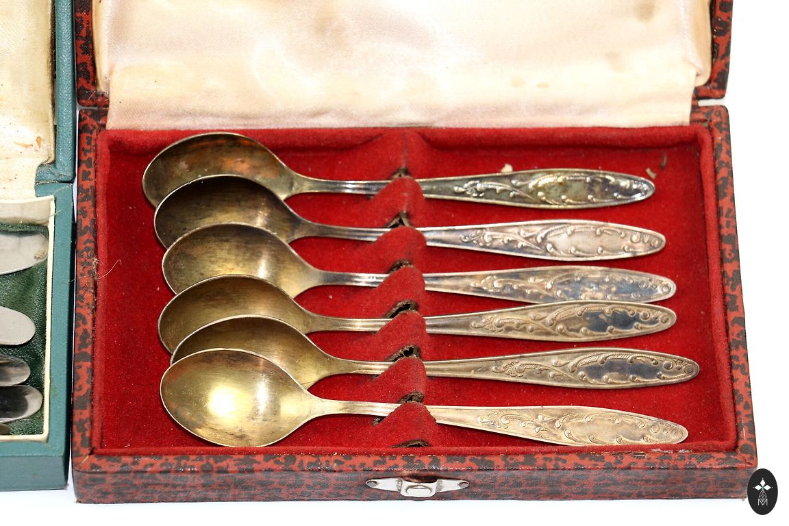 Stāvoklis: autentisks vintage – ir buktes, nolietojuma pazīmes un skrāpējumi. Metāls ir plāns un lokās, taču tas tikai papildina vecuma šarmu.