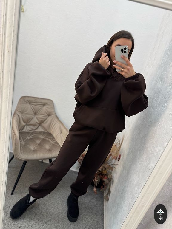 Divdaļīgs komplekts - one size izmēra, garas piedurknes, biksēm ir kabatas, elastīgs materiāls, jostiņa komplektā. Plecos polsterējums.