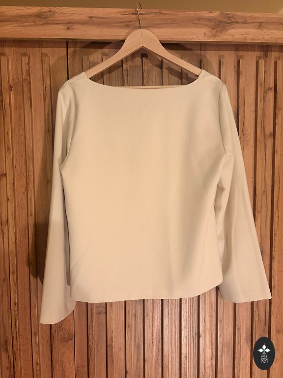 The blouse is fantastic! Sleeves with elastic, a flowing blouse that will cover what needs to be covered.
