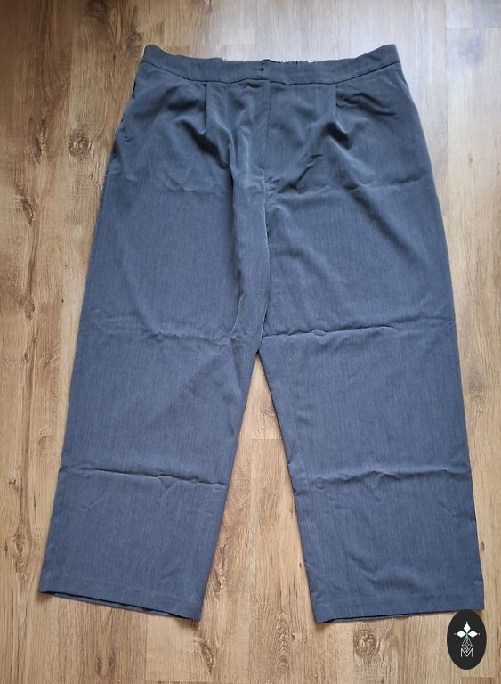 Lengvi, patogūs vasariniai kelnės su šoninėmis kišenėmis ir plačiomis klešnėmis. Šoninės siūlės ilgis – 108 cm, juosmens apimtis – 82 cm. Sudėtis – 66 % poliesteris, 30 % viskozė, 4 % elastanas. Tinka kasdieniam nešiojimui, bet taip pat yra pakankamai elegantiškos, kad jas būtų galima dėvėti biure.