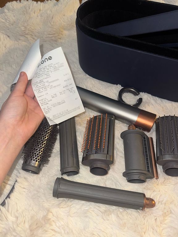 Dyson hairdryer, latest model! Used a couple of times and it's just sitting there, selling because I immediately bought a styler and straightener, which have a built-in hairdryer, and that's enough for me. I'll give away the storage bag as a gift.
