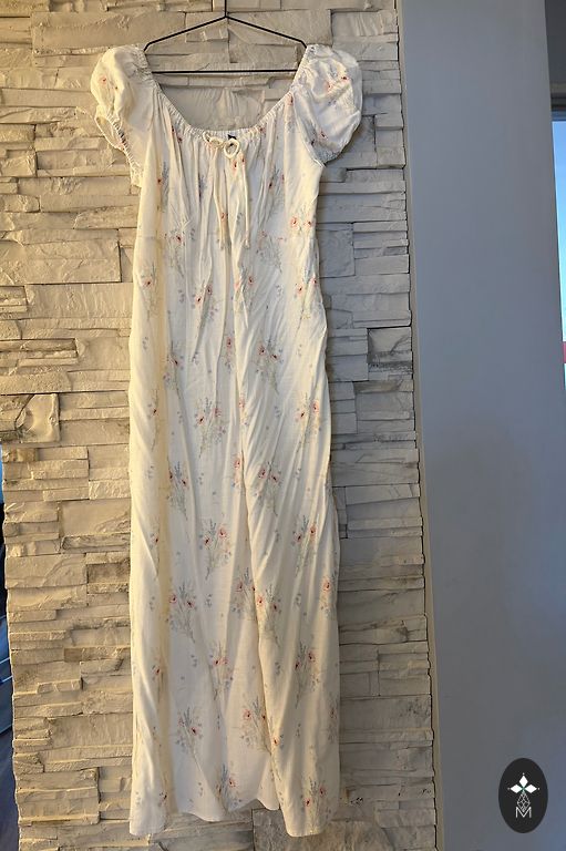 Sundress - suknelė su raukiniais, krūtinė 100, juosmuo 90, ilgis 125 cm.