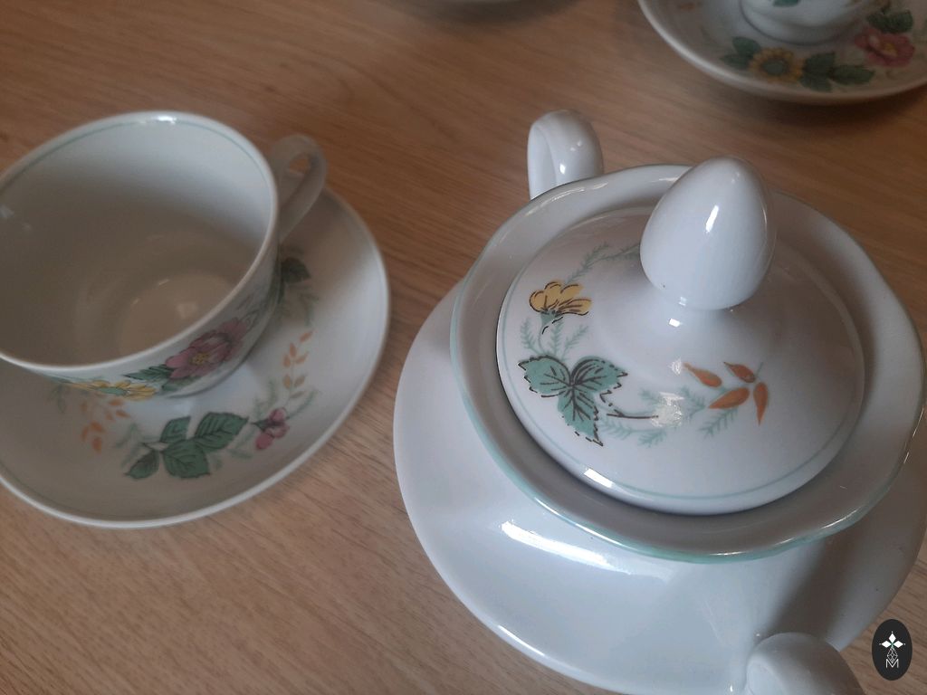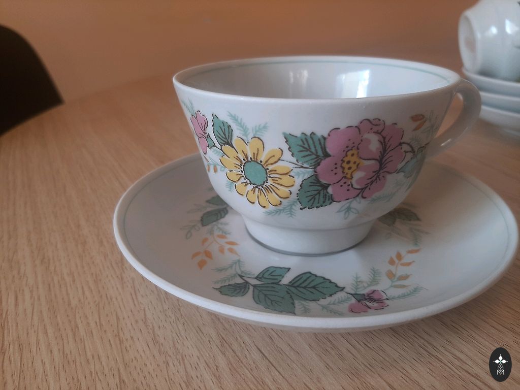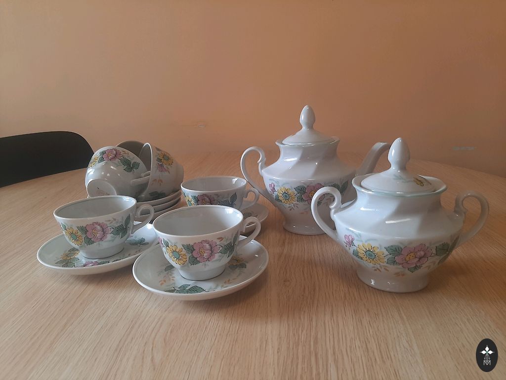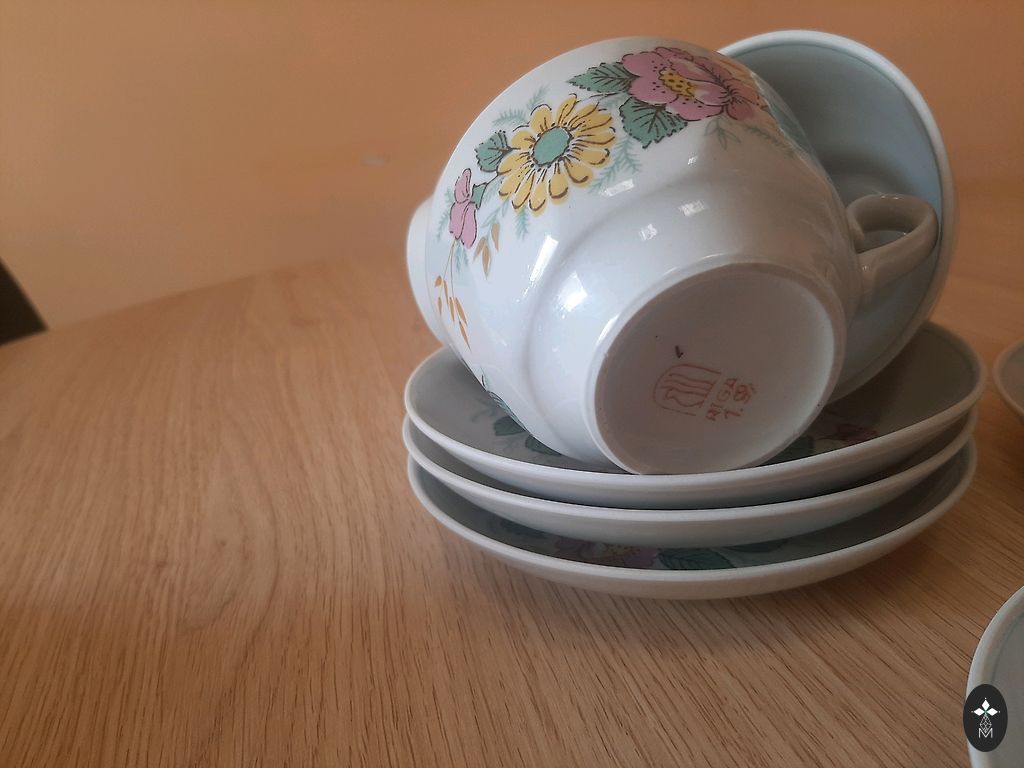 Сервиз "Rīga", в хорошем состоянии, в использовании не был, 21 предмет, красное клеймо, на одном маленьком блюдце синее клеймо.