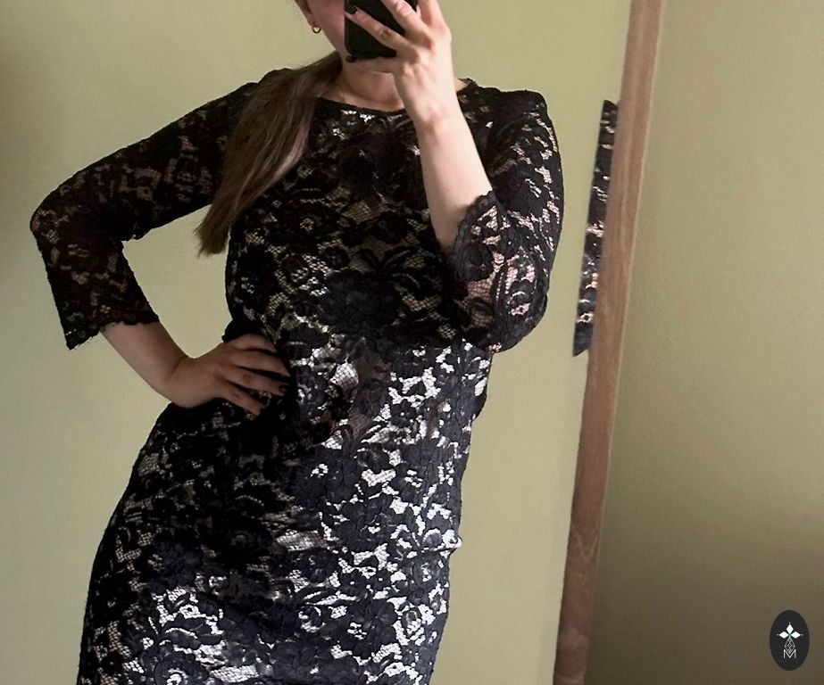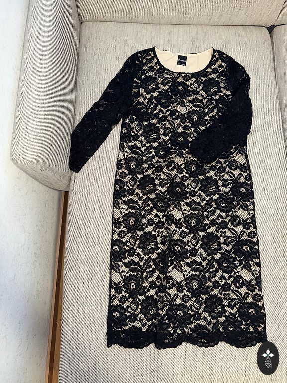 Kangas: viskoos 63%, lina 38%, suurus 42, pikkus 130cm, laius kaenlaalustes 51cm, laius vöökohal 46cm. Väga heas seisukorras, kantud üks kord.