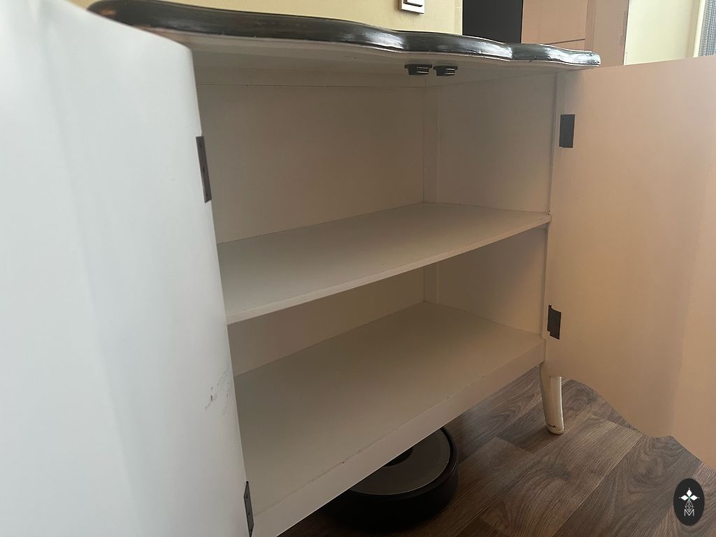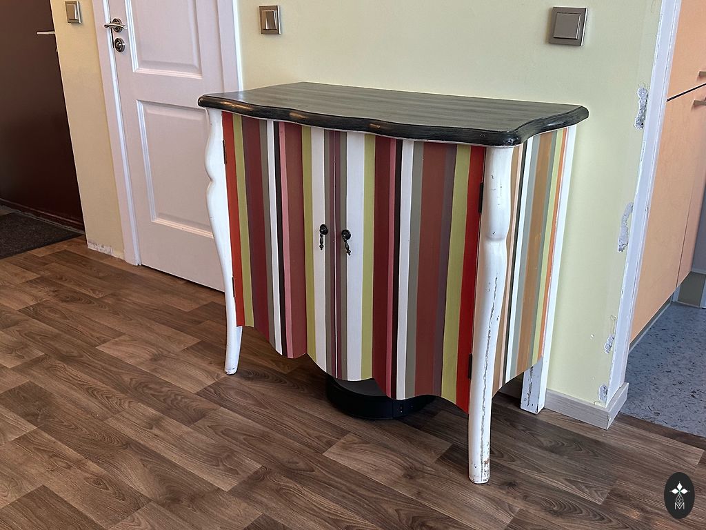 Pirktas parduotuvėje Čiekurs. Kokybiška medžiaga. Būklė puiki (pervežimo metu du įbrėžimai, kurie beveik nematomi). Viršutinė ruda dalis matmenys (ilgis 165, gylis 35, aukštis 50). Apatinė balta dalis matmenys (ilgis 165, gylis 44,5, aukštis 34). Atskirai sienos lentyna komplektas su komoda matmenys (ilgis 120, aukštis 24 - pagrindinės plokštės matmenys).
