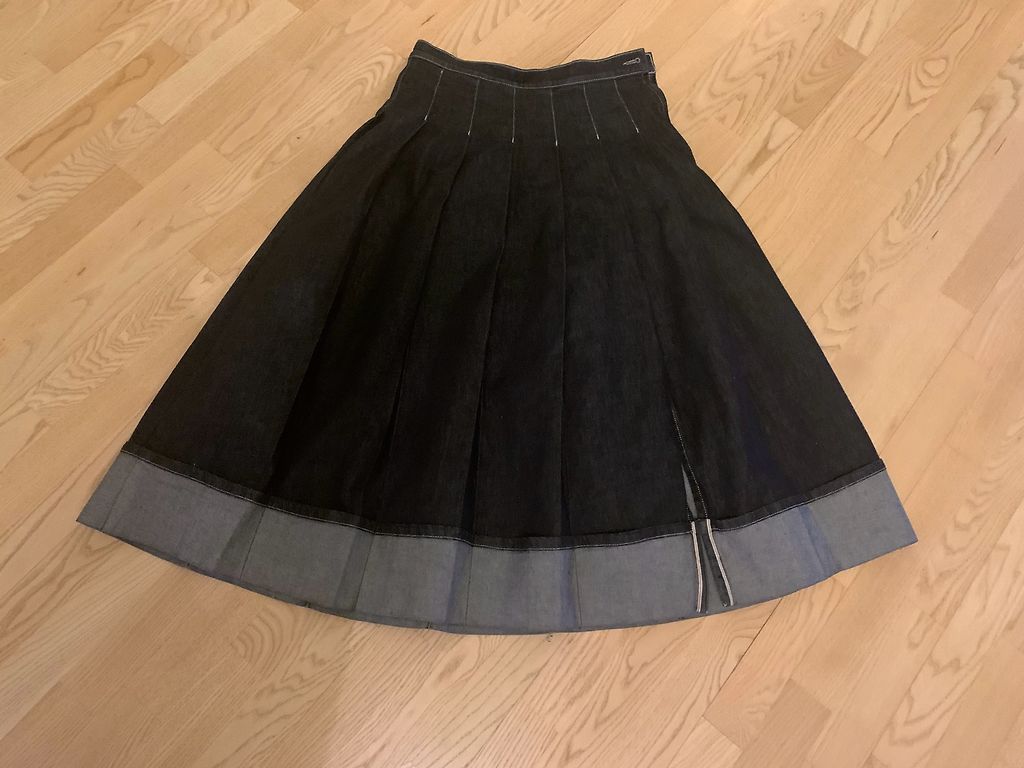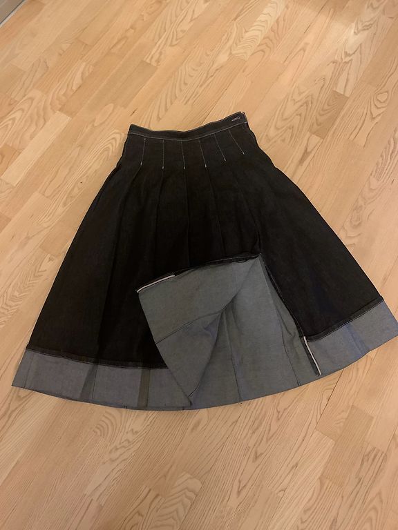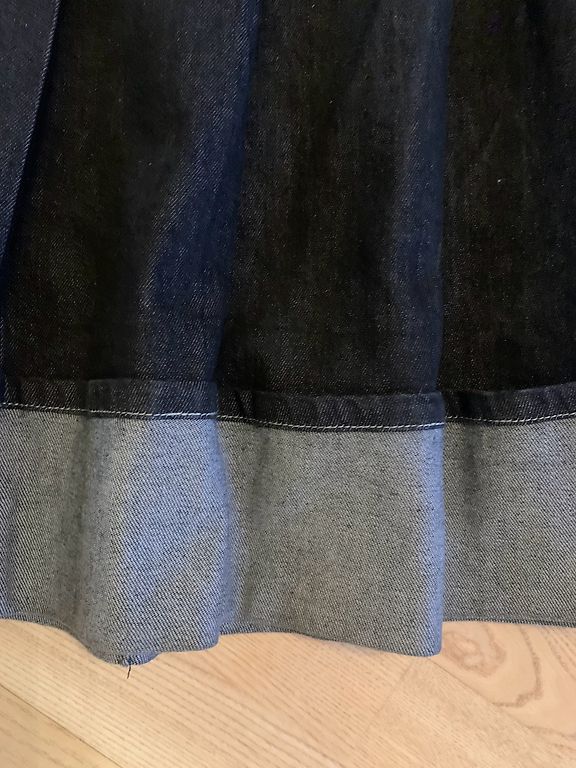 Kantud paar korda. Vöökoht 78 cm, puusad 102 cm, pikkus 83 cm.