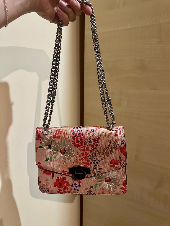 Labai graži rankinė stovi spintoje ir laukia savo naujos savininkės 😍 Rankinė turi trumpą grandinėlę. Pagrindinė kišenė ir dar mažesnė kišenėlė. Ilgis 28,5cm, aukštis 19cm.
