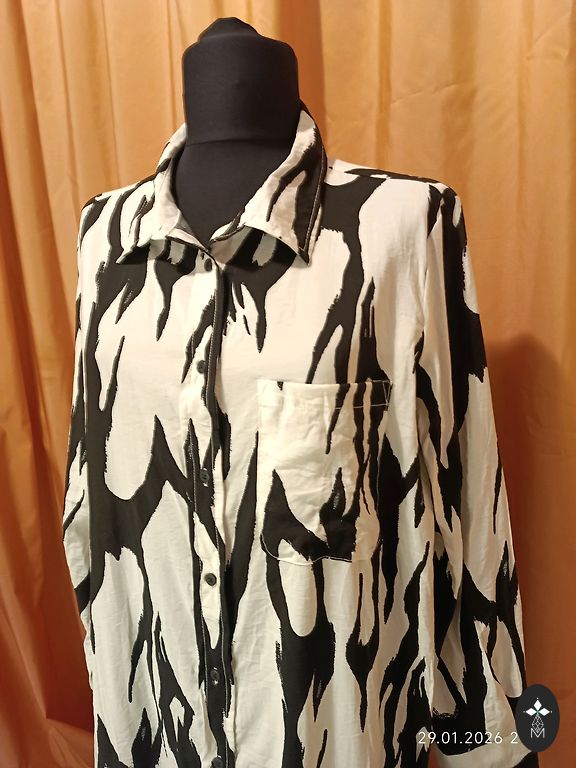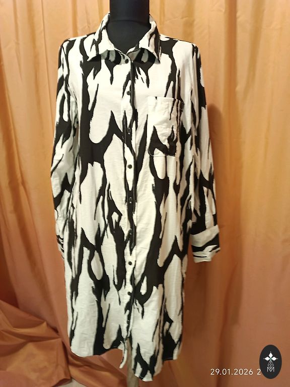 Garums mugurpusē -67 cm, piedurknes garums 61 cm, krūšu apkārtmērs pusaplī 55 cm, 1/2 piedurknes platums pie roku izgriezuma 19 cm
