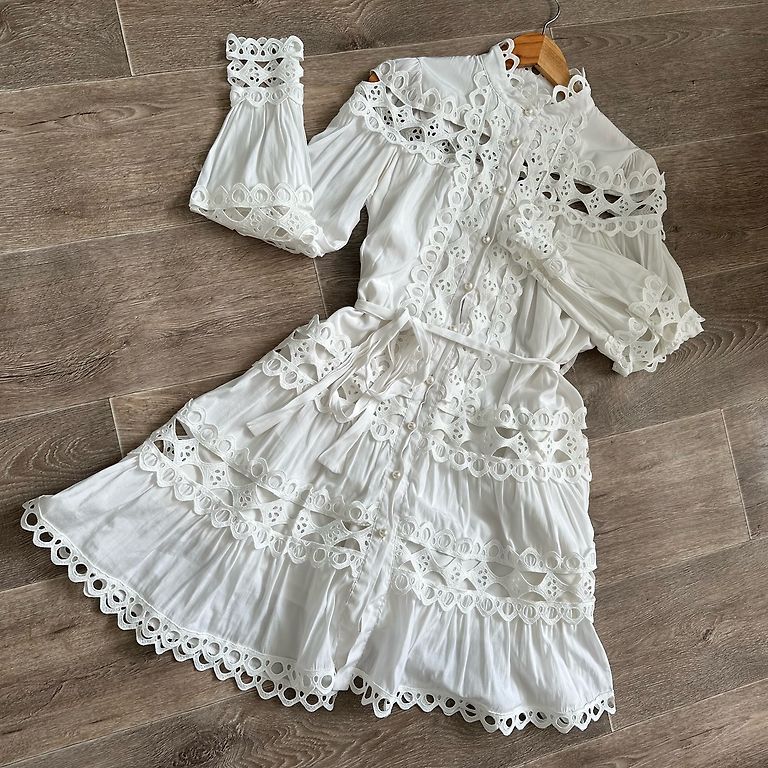 Koši zila atlasa kleita. Uz piedurknēm podziņas, mugurpusē rāvējslēdzis. Zemāk par jostas vietu - pieguļoša, rievota. Izskatās ļoti skaisti. Tika sūtīta asos. Vilkta vienu reizi uz dažām stundām.