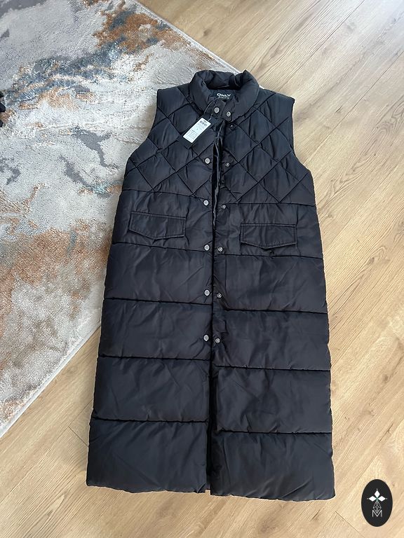 Soe, pikk vest. Suurus märgitud S. Mõlemal küljel lukud. Kapuuts eemaldatav lukuga. EI BRONEERI! ❌