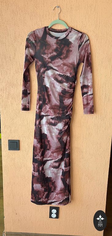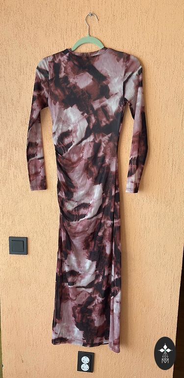 Parduodu chaki spalvos suknelę, šiek tiek elastingą. Suknelės ilgis – 108 cm, klubų apimtis – 90 cm, krūtinės apimtis – 90 cm. Ant jos nurodyta dydis S, bet manau, kad ji labiau tinka M dydžiui.
