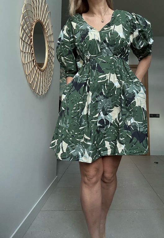 Kreklveida kleita, šķēlumi sānos, garums 116cm, piedurknes garums 60cm, krūtīs 96 cm. Materiāls plāna kokvilna. Var valkāt kā kleitu vai garu kreklblūzi pie biksēm.