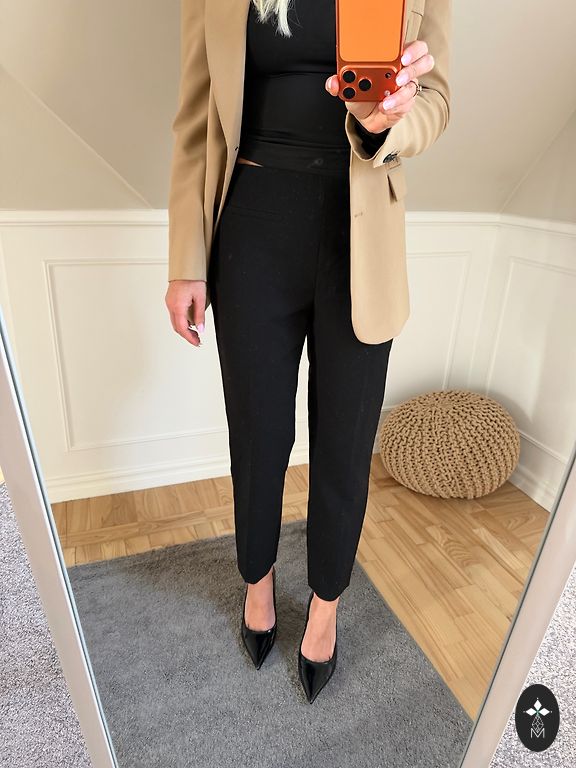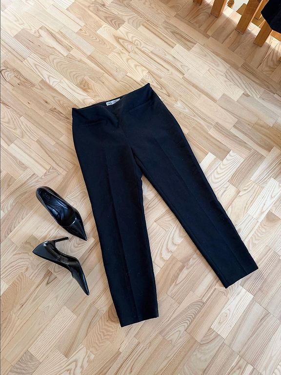 Красивые, элегантные брюки. Надевала их, может быть, два раза. Ждут своего часа в шкафу, потому что я до сих пор не похудела до нужного размера! 🫣 Талия 39 см. Длина 107 см. Ширина внизу 30 см. В ткани есть немного эластана.