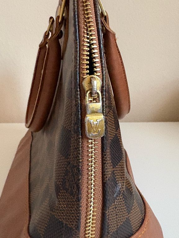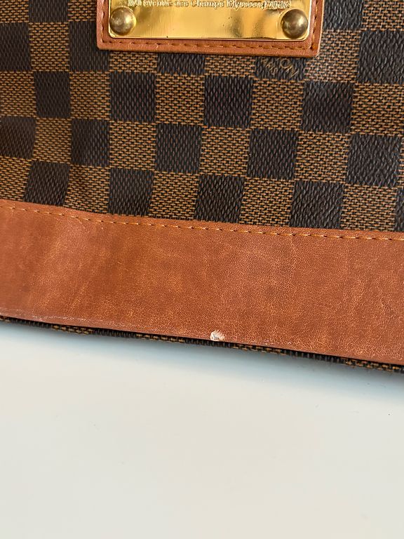 Ruda „Louis Vuitton“ rankinė. Yra nedideli defektai (matomi nuotraukose), tačiau jie netrukdo naudoti. Matmenys: plotis – 37 cm, aukštis – 25 cm.