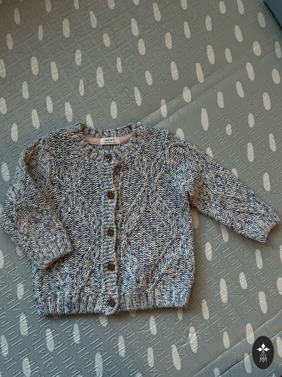 Laisvai krentančio kirpimo aukšto medvilnės kiekio džersio audinio sportinis megztinis. Apvalus kaklo iškirpimas. Spaudžiamų sagų užsegimas. 100% medvilnė. Spalva kreminė. Dydis 68 cm.