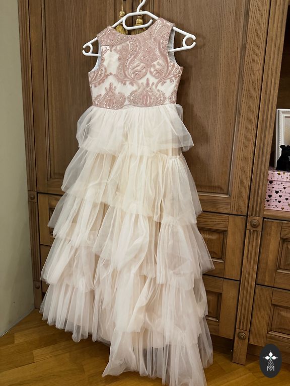 Kleita no iekšpuses ir kokvilna , bērnam nekur nekasās un nekož materiāls . Ļoti kupla un tajā paša laika viegla kleita . Ļoti laba stāvokli vilkam kad bijām 116 un derēja arī kad bijām 120 🎀💕 divas reizes vilkta kleita 💕