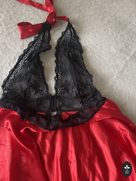 Tamsiai raudona babydoll suknelė.