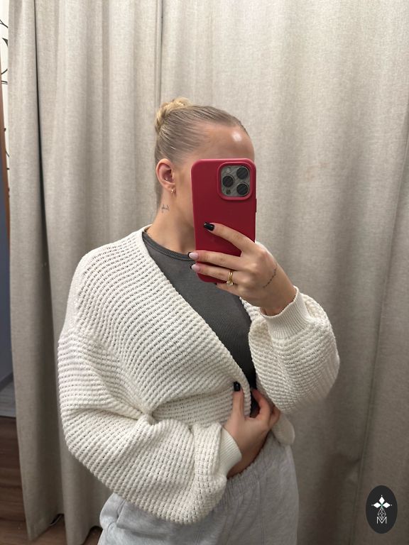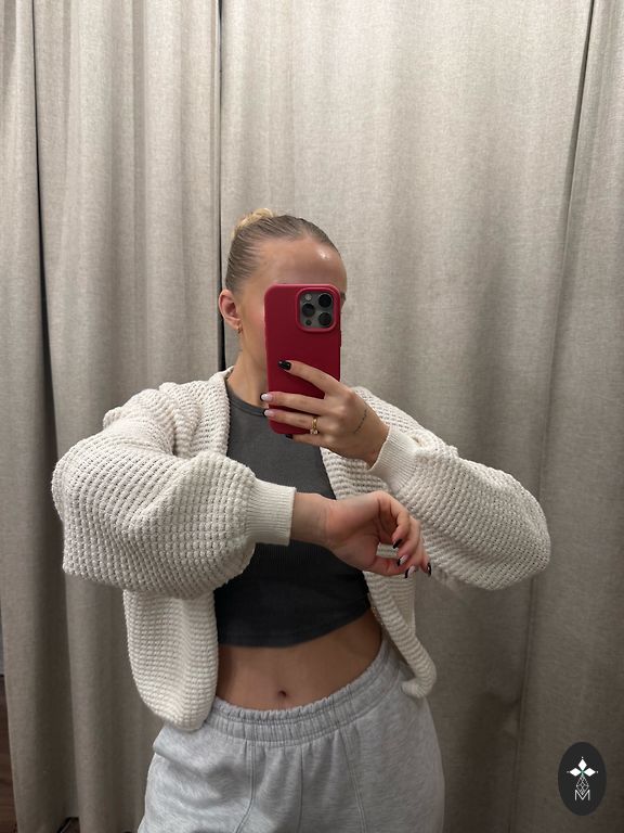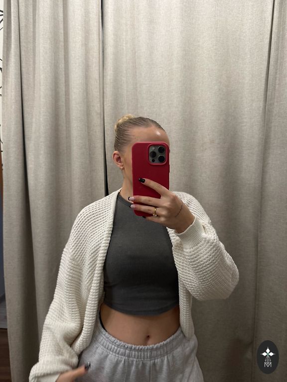 Brown, knitted crop top with a cardigan.