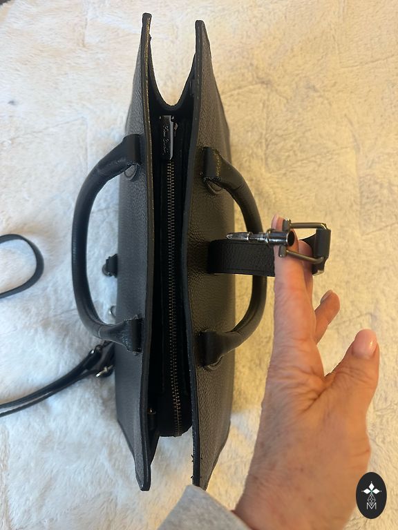 Lietota maz,stūrīšos,maliņās nekas nav noberzies,āda visur vesela .Metāliskie elementi nav vairs tik ļoti spoži kā jaunai.Trūkums/defekts -slēdzējam nokritis “gals”