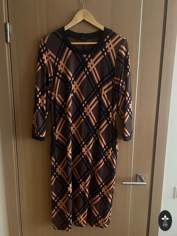 Rindkere umbes 106 cm, pikkus pikimas osas 107 cm. Märgitud 42 suurus. Ütleks, et vastab 40/42.