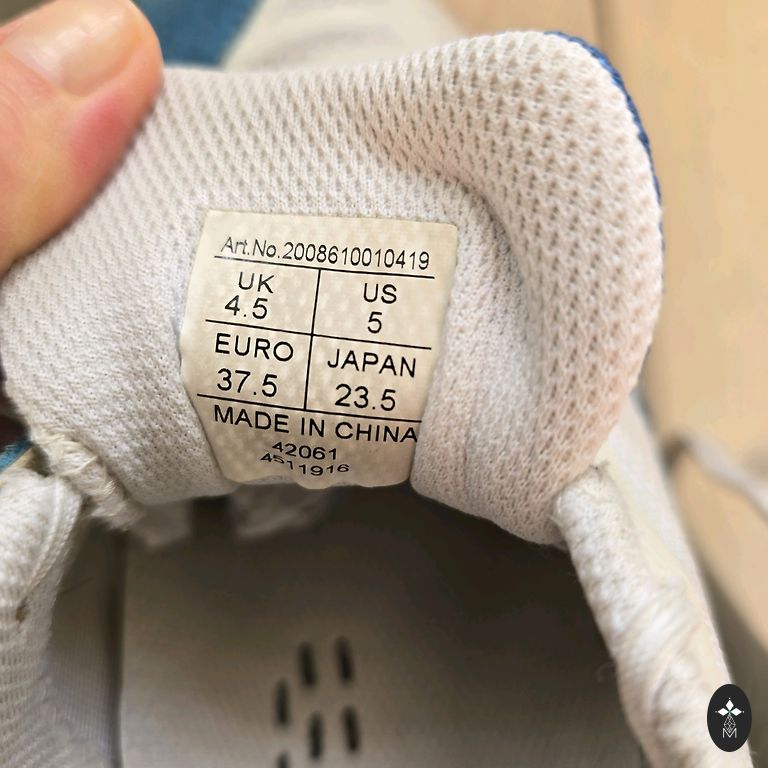 In the photo, a small dot can be seen near the toe of one shoe, but it was already there when we bought them.