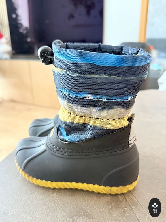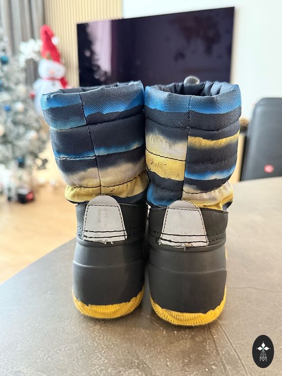Super Kuoma laste saapad! Väga mugavad, soojad, kaitsevad niiskuse eest – kandsime nii sügisel kui kevadel jahedatel, vihmastel päevadel, kui ka kogu talve. Saapad on heas seisukorras – mustad koos helkurelementidega ees ja taga. Väga mugavad – küljeääred on avatavad, mis võimaldavad saapaid hõlpsasti jalga panna ja riideid/kombinesooni saapasse sättida.
