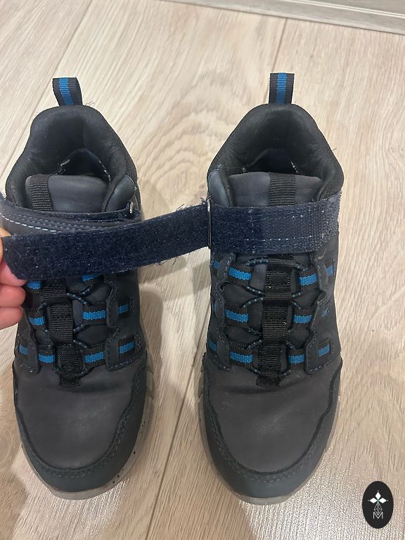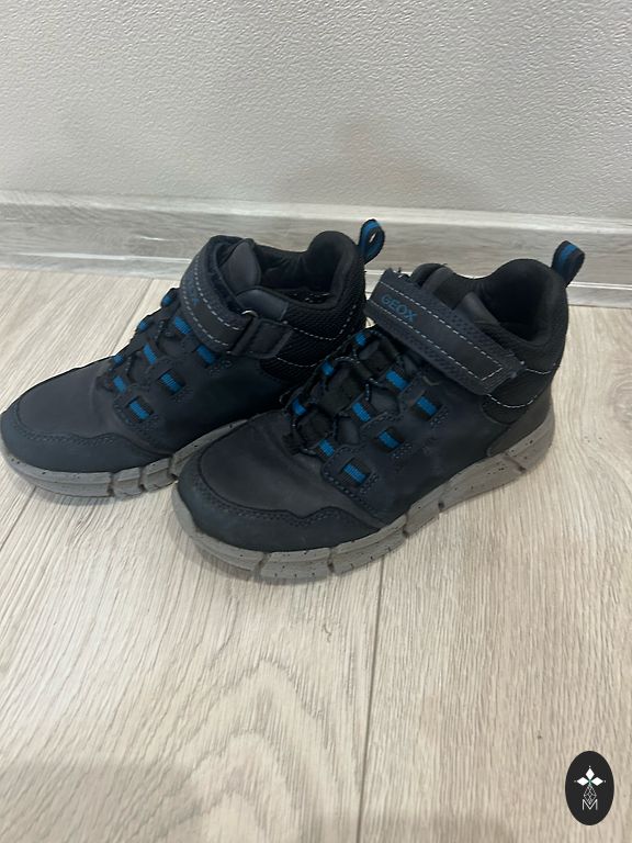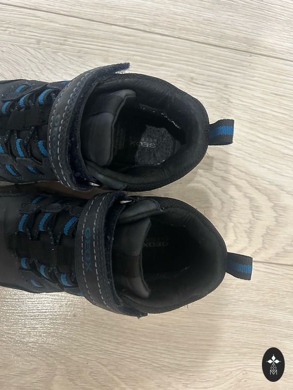Geox žiemos batai geros būklės. Šiek tiek nutrinti lipdukų viršus ir guminės juostos iš kombinezonų galo, jei dėvėti ant kombinezonų, tai visiškai nematyti, kitų defektų nėra. 12,5 cm. Vidpadžiai.