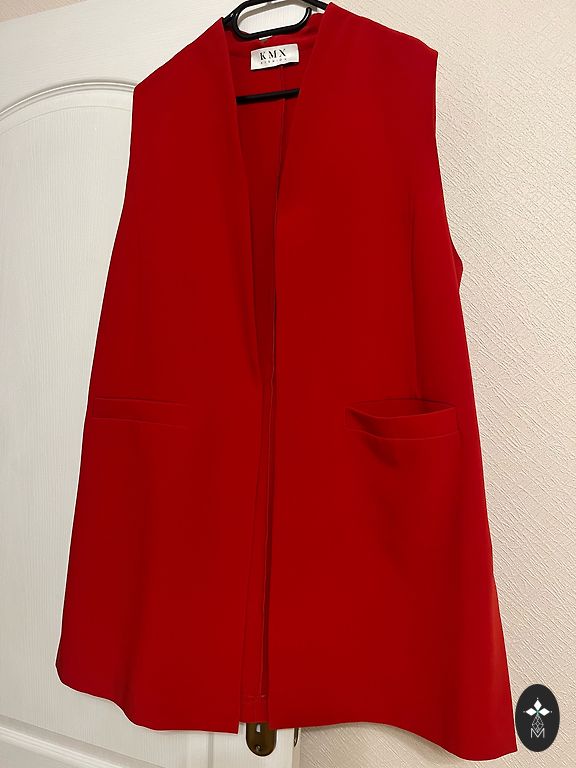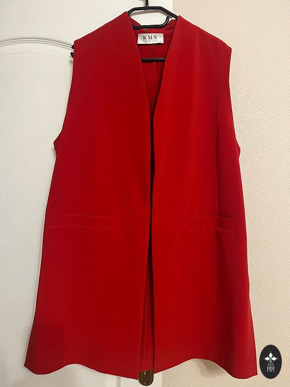 Erepunane jope, rinnus 115 cm, pikkus 60 cm, varrukad mansettidega 52 cm