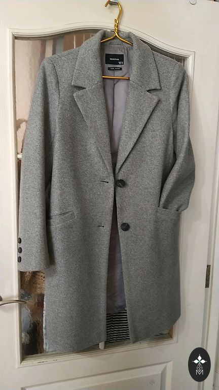 Bogner jope/mantel, üsna soe. Seisund laitmatu. Värv beež, päikese käes helkleb nagu kameeleon. Saksa suurus 40. Pikkus umbes põlvini.