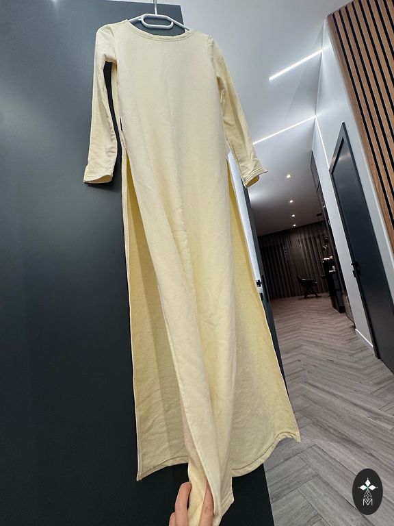 Veniv, veidi balonlõikega varrukatega. Tagaosas lõhik. Rinnaümbermõõt - 45-55 cm (väga venitamata) Vöökoht - 30-40 cm Pikkus - 123 cm ☀️Lisandub saatmine 2€ ☀️Aitäh, et vaatasid minu poodi! ☀️Ostes 2 eset, pakiautomaat minu kulul (dpd)🤗