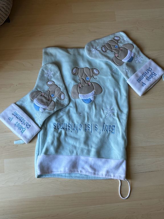 Excellent winter jumpsuit - size 80+6, made in Finland. Worn by an active little girl, as she liked bears and green color at the time. The color has faded on the bottom and knee areas, but it doesn't interfere with use.