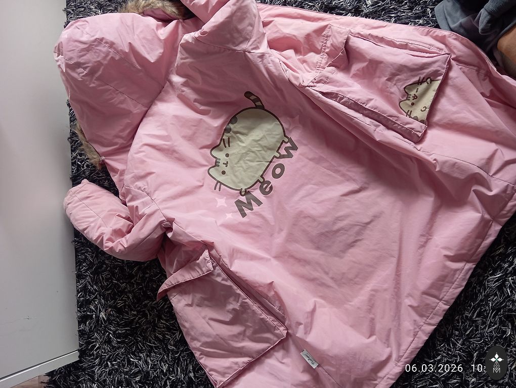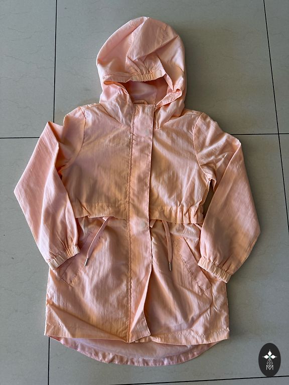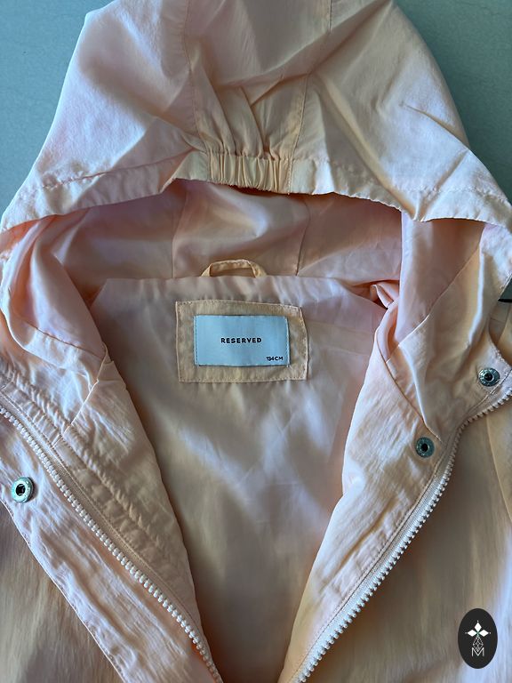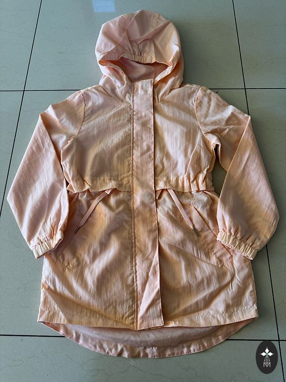 Malonus rudens/pavasario švarkas su flisu viduje (rankovėse nėra). Apatinė dalis gali būti suveržta. Spalva rausva (panaši kaip 4 paveikslėlyje). Trūkumai tik priekyje atplėšta lipni juostelė, galima prisiūti.