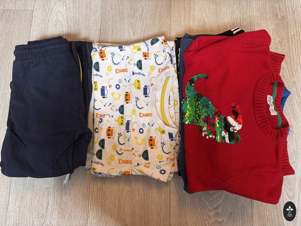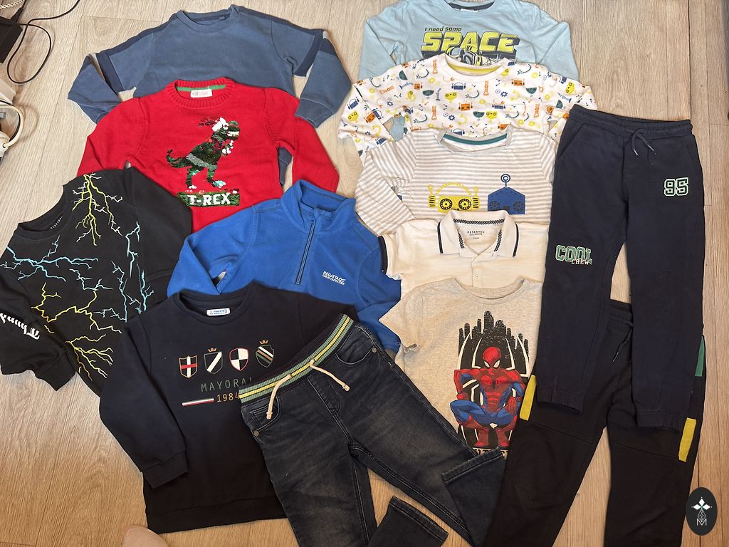 Komplekt igapäevaseks kasutamiseks ja lasteaeda. Komplektis on jakk, kampsunid, spordisärgid ja T-särgid.