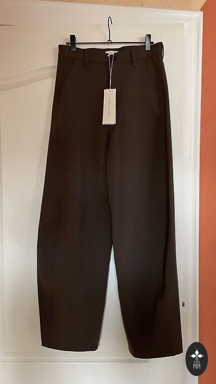 Совершенно новые, с биркой, широкие брючки от River Island, цвета кофе с молоком. Брючки с высокой талией, впереди, по бокам большие карманы. Указан размер 8, S-ка. Объем талии -70 см Объем бёдер -102 см Ширина штанины по нижнему краю - 51 см