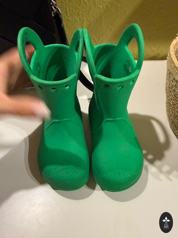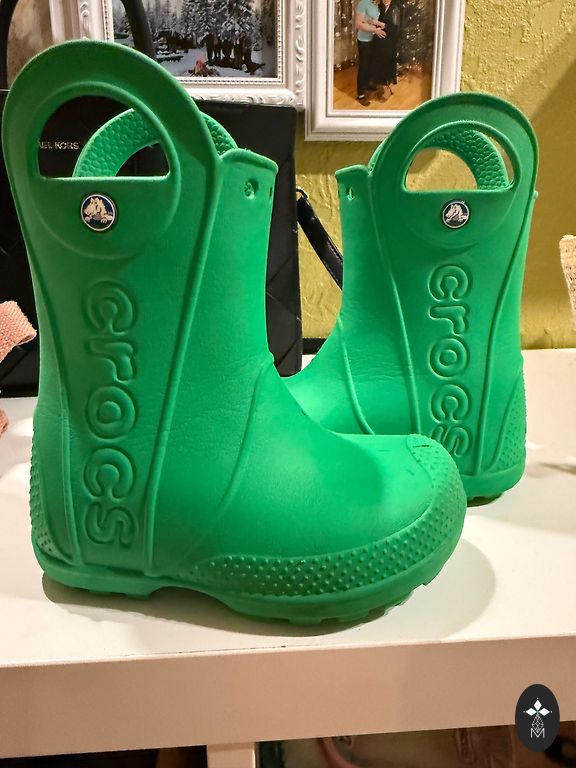 Trūkumi - vienam zābakam ir nedaudz noberzusies zaļā krāsa (skat.bildēs)