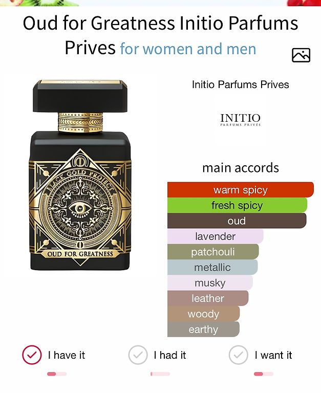 Oud For Greatness värskem versioon lavendli ja bergamoti kombinatsiooniga. Ei ole nii pealetükkiv kui originaalversioon, ideaalne neile, kellele OFG tundub liiga intensiivne. Palju igapäevasem, kergem, kuid säilitab väga hea püsivuse.