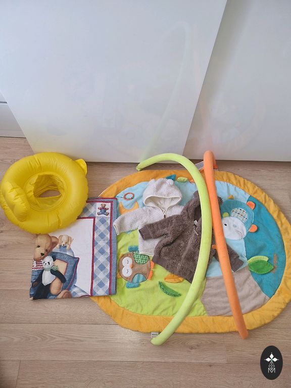 Качели также работают с пульта, можно менять скорости, на которых будет качаться ребенок. Есть также дефекты - один виден на фотографии, задняя часть подушки немного потрепана. Кроме того, игрушки больше не крепятся так плотно, иногда сами падают.