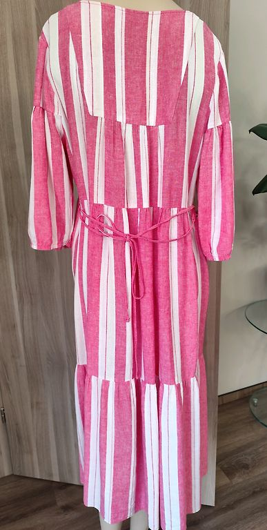 Parašyta - 38 dydis, bet yra labai oversize, po pažastimis - 130, klubai - 122, ilgis - 93, pirkau čia pat, bet man per didelis.