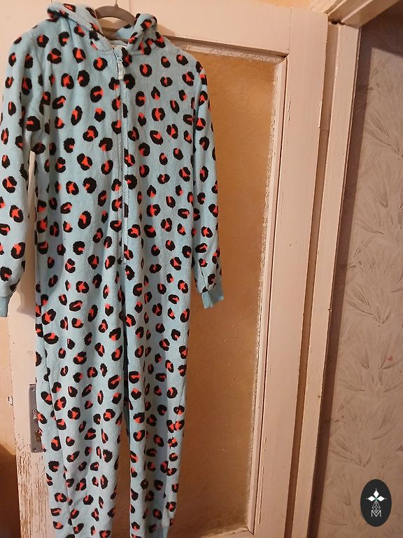 Ļoti mīksta, kvalitatīva flīsa kopējā siltā pidžamma. No pleca līdz kājas staras apakšmalai ir 95cm.