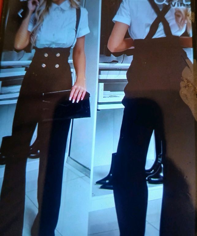 Püksid osteti defektiga, oleksin ise kandnud, kuid mulle liiga pikad. Pükste pikkus ülevalt alla mõõdetuna on 108 cm. Vöökoht 34 cm, venitatav kuni 48 cm, kuna taga on kummipael, seetõttu venib ka. Puusad 56 cm. Pükste sääre laius 56 cm. Defekt on taskute juures kulunud kangas, vaata viimaseid 2 fotot. Tagasi ei võta. Lisanduvad saatmiskulud.