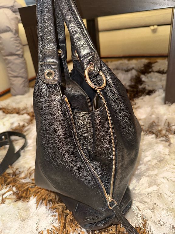 Покупала здесь в бутике, удобный размер 24х14х7, фурнитура цвет серебро. Одно отделение и карманчик. Влезает телефон, кошелек и что-то мелкое, как по мне самый удобный размер. Все мои сумки такие:))))