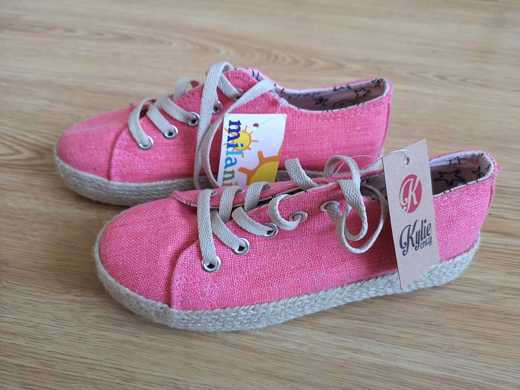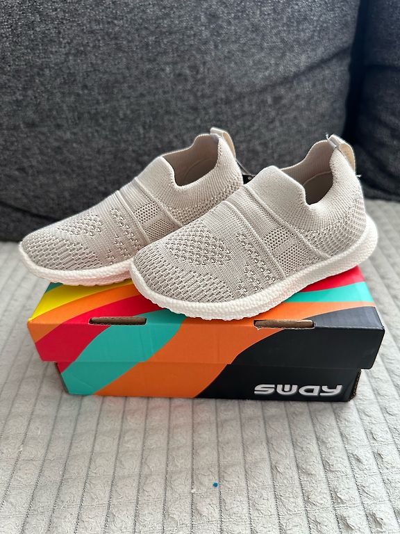 Jauni bēšīgi snikerīši, nedaudz ar zelta elementiem. Var pievilkt arī pie svārkiem un kleitām. Uz lipekļiem, ērti uzvilkt.