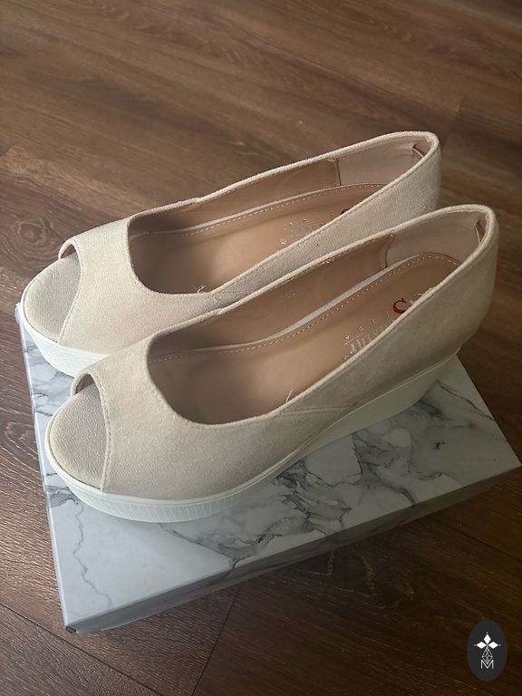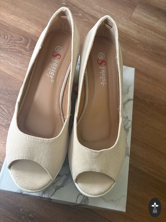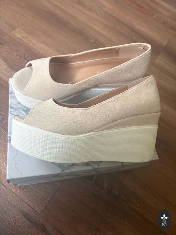Ļoti jūsmoju, kad pirku. Augstais papēdis ( ap 9cm) ērts, jo platformas zolīte. Kājas izskatās izcili. Pēc dažām pastaigām būs jānomaina "bleķīši". Papēžu aizmugures mazliet nobrāztas, bet nevar ievērot. Iekšpēdiņa (cik nu precīxi neizņemamu pēdiņu vispār var nomērīt) 24 - 25cm