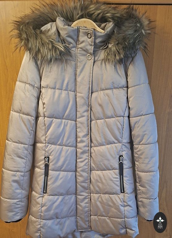 Jaciņa ziemai,ar māksl.krāgu kapuce, s izm., paduses apkartmers 100 cm., rokas garums 63 cm., garums no muguras uz leju 59 cm.sūtu ar omnivu.