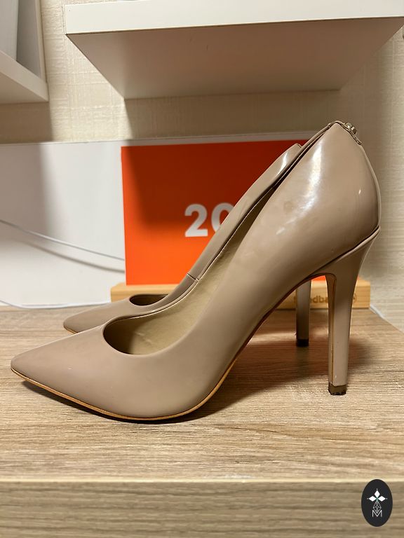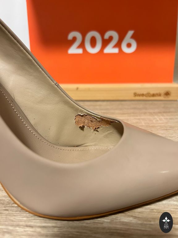 Pasteļvioletas mākslīgās lakādas kurpes, iekšpusē ir noberzums (redzams 3.foto).